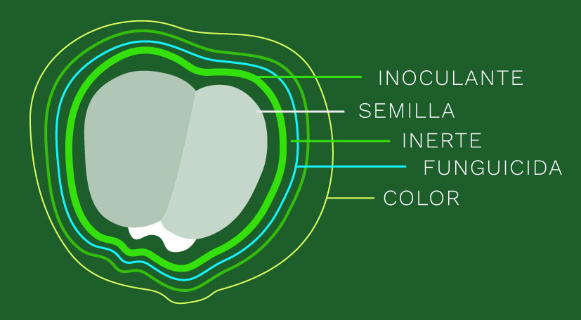 La tecnología de Los Prados S.A. de peletado de semillas por centrifugado que garantiza la cobertura total de la semilla con terápicos específicos para cada especie y uso previsto del cultivo.